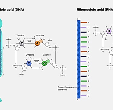 Purines: Adenine (A) and Guanine (G).
