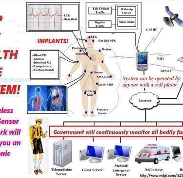 Sensor nodes, RFID, GPS and USID chips can send electronic information over the internet via satellite to ANYONE, including agencies who want to know every time you move a muscle or take a breath, pee - or have sex. This is supposedly medical technology but it is already being used by the FBI, Fusion Centers, Infragard and law enforcement and emergency medics to track, surveil, TORTURE and ID people, even it they are dead.