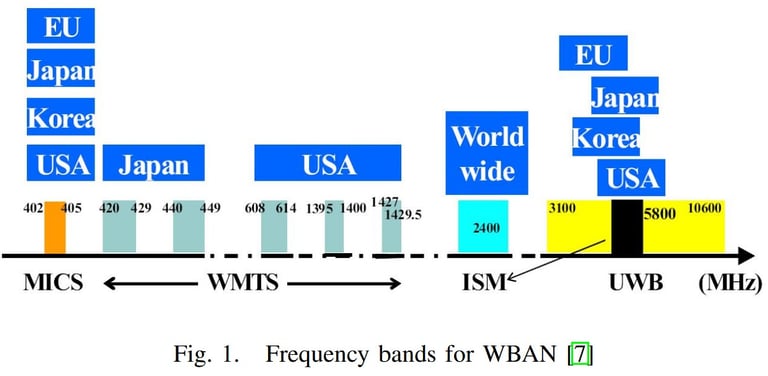 The FCC has approved the allocation of 40 MHz of spectrum bandwidth for medical BAN low-power, wide-area radio links at the 2360–2400 MHz band. This will allow off-loading MBAN communication from the already saturated standard Wi-Fi spectrum to a standard band.[14]